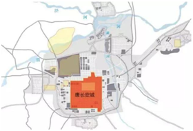从上面这张图可以很直观的看出:唐长安城相较于现在的西安城,规模小了很多,大概只有目前西安市区的一半左右。