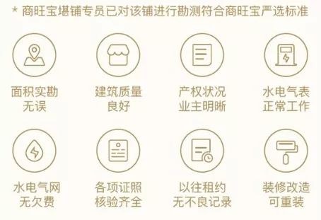 商旺宝平台拥有健全的严选机制,对铺源进行严格审核,确保100%真实,产权明晰;并利用海量数据,形成租金行情报表,确保铺源租金与周边实际租金均价一致,做到租金透明,租铺放心。