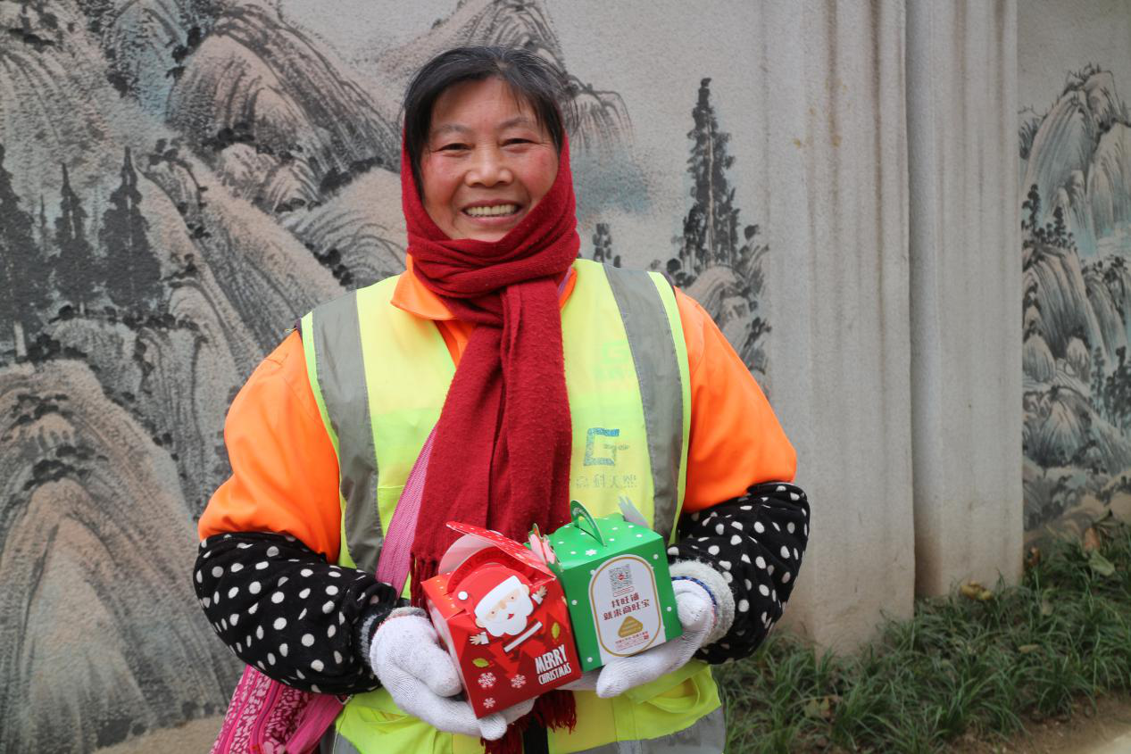 之后,我们也为在街边工作的环卫工人、保安大哥送上了节日的祝福和问候。