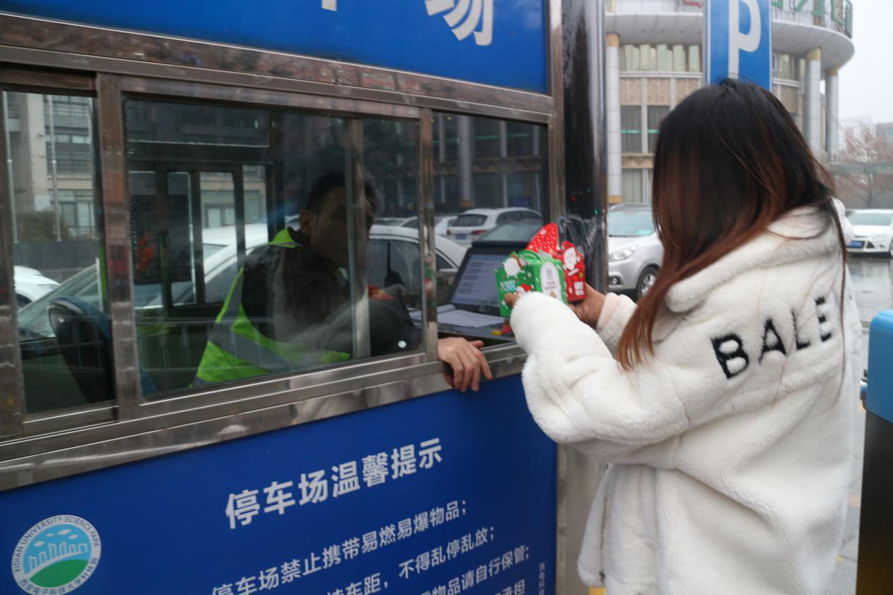 早上,我们从科技路出发,来到了快递小哥工作的地方,为他们送上平安果及节日的问候,感谢他们为我们带来便捷的生活。
