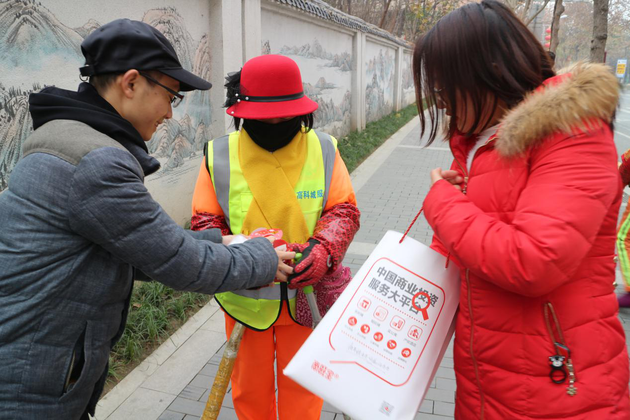12月24日(圣诞节前夕),商旺宝北京集团股份有限公司西安分公司员工通过“走街串店,礼送平安”大型公益活动,为商户门店、外卖小哥和一直奉献在基层岗位上的城市打拼者送去了节日的关怀和问候。